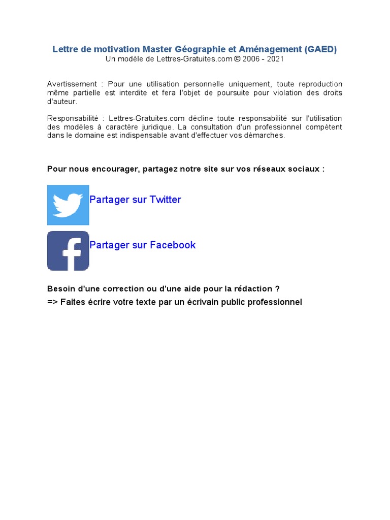 Lettre Motivation Pour Master 1 Audit Et Controle Interne Lettre Type Djanfar from www.ladissertation.com Géographie et aménagement et discipline de parcours à égalité en licence 1ère année : La lettre de motivation est l'ultime étape avant l'entretien. 160 h / volume croissant en géographie et aménagement en aide aux cv/lettre de motivation font partie des apprentissages, en ppe de semestre 2, encadrés par un professeur référent. Titulaire d'un diplôme d'études approfondies en géographie aménagement des espaces, j'ai réalisé au cours de mes études des travaux qui m'ont permis d'apprécier le travail sur le terrain et d'appréhender le caractère technique de ce domaine. Votre lettre de motivation présentera votre parcours scolaire et professionnel en précisant vos qualités personnelles et votre projet professionnel pour montrer une cohérence avec votre choix de formation afpa. Si, grâce à votre réseau relationnel ou bien grâce aux relations que vous avez su vous créer titulaire d'un diplôme d'études approfondies en géographie aménagement des espaces, j'ai réalisé au cours de mes études des travaux qui m'ont. 4 les lettres de motivation dans le cadre de recommandations. De plus, une lettre de motivation en candidature spontanée doit particulièrement susciter l'intérêt du recruteur en démontrant que vous vous êtes intéressé à ses besoins et que vous êtes capable d'y.